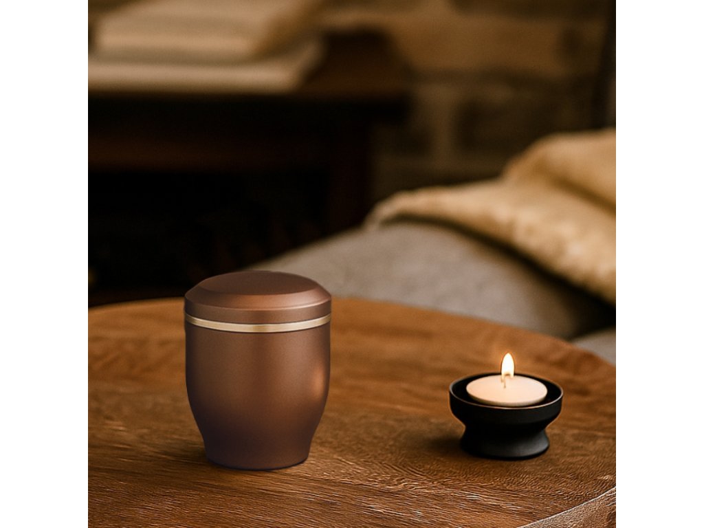 Mini urna z medi, s nástrekom v príjemnom medenom odtieni.