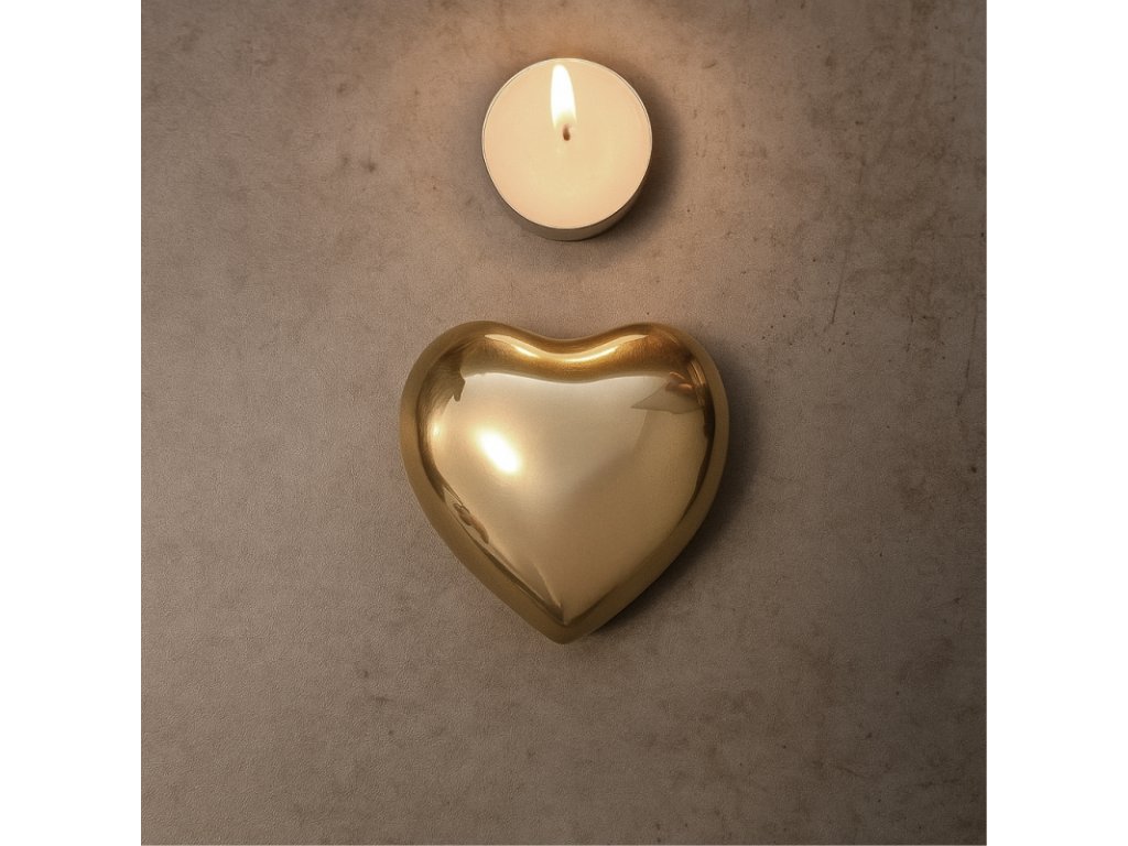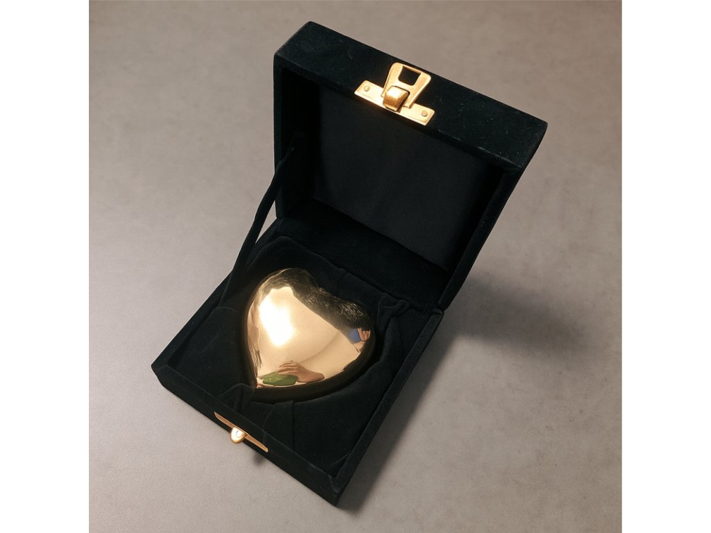 Mosadzná urna - relikviár v tvare srdca, zlatá
