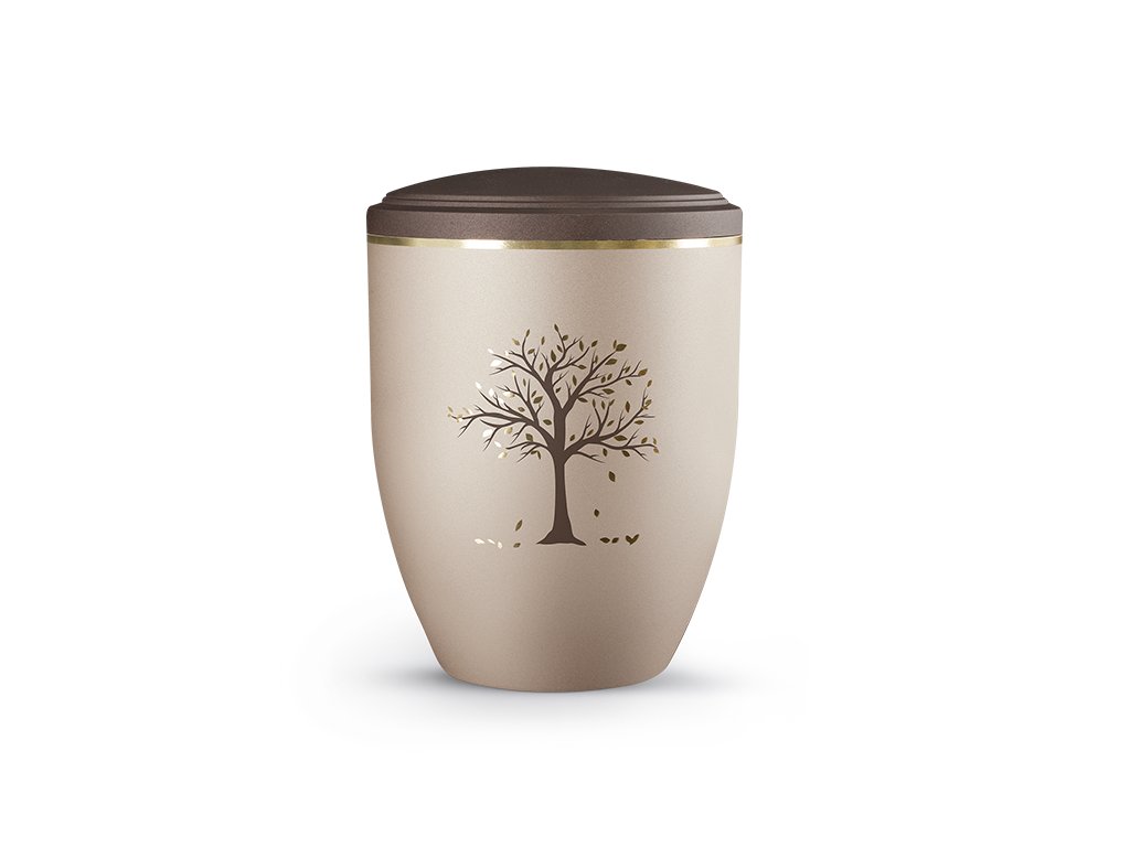 Strom je symbolom spojenia neba a zeme, a preto ho mnohí vnímajú ako symbol života a nesmrteľného ducha. Urna la Vida zapôsobia svojimi vznešenými motívmi stromov. Kombinácia hnedej a zlatej vyzerá obzvlášť jedinečne. Urna má povrch šampanskej farby a veko v tmavo hnedej farbe.